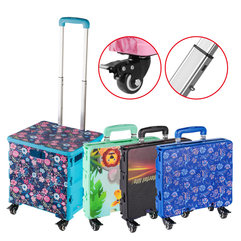 UV打印拖车买菜购物拉货手推车便携行李小拉杆车家用手拉车折叠拉杆箱_折叠购物车生产厂家-珠海市杰玛科技有限公司