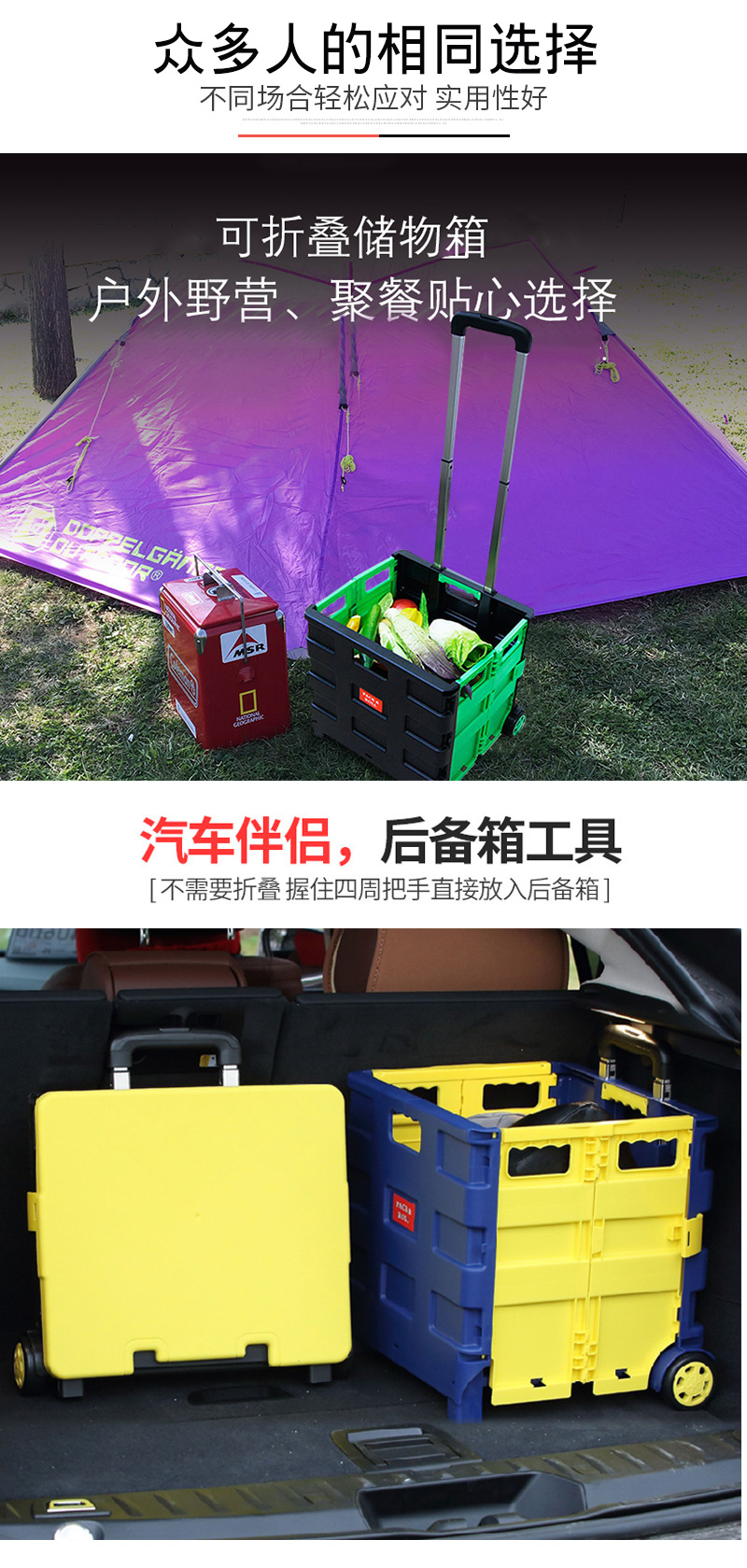 洁妈车后备箱塑料折叠购物车可印制Logo便携家用买菜车取快递小推车_折叠购物车生产厂家-珠海市杰玛科技有限公司