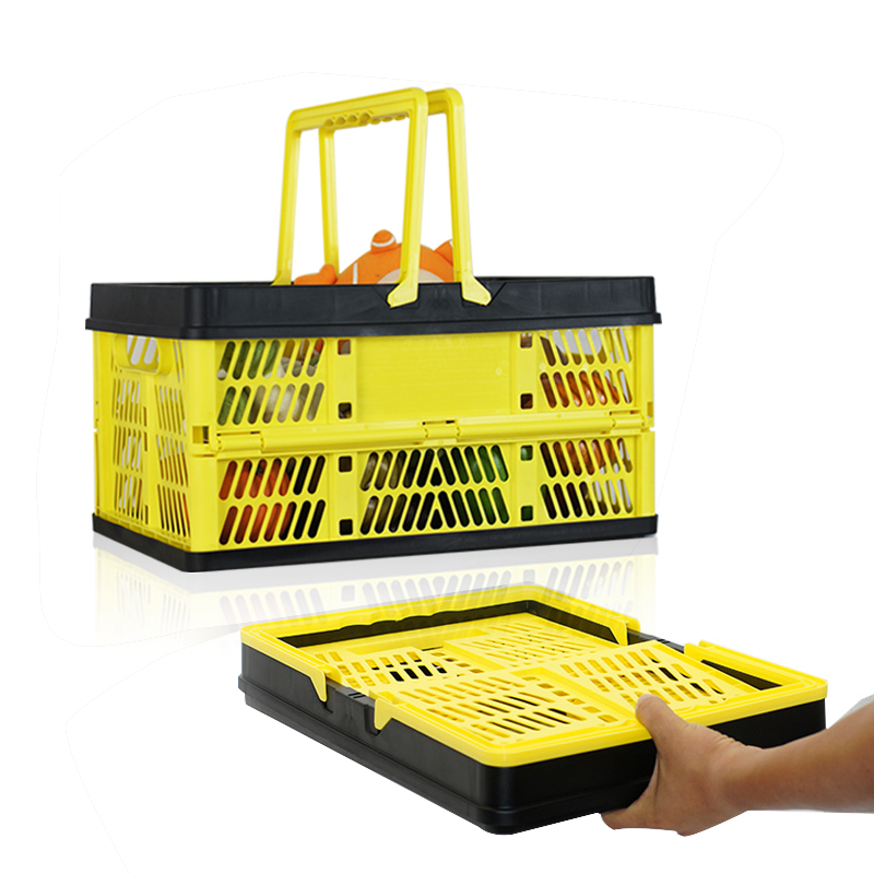 洁妈超市可折叠购物篮塑料购物框手提篮可印制Logo塑料篮子_折叠购物车生产厂家-珠海市杰玛科技有限公司