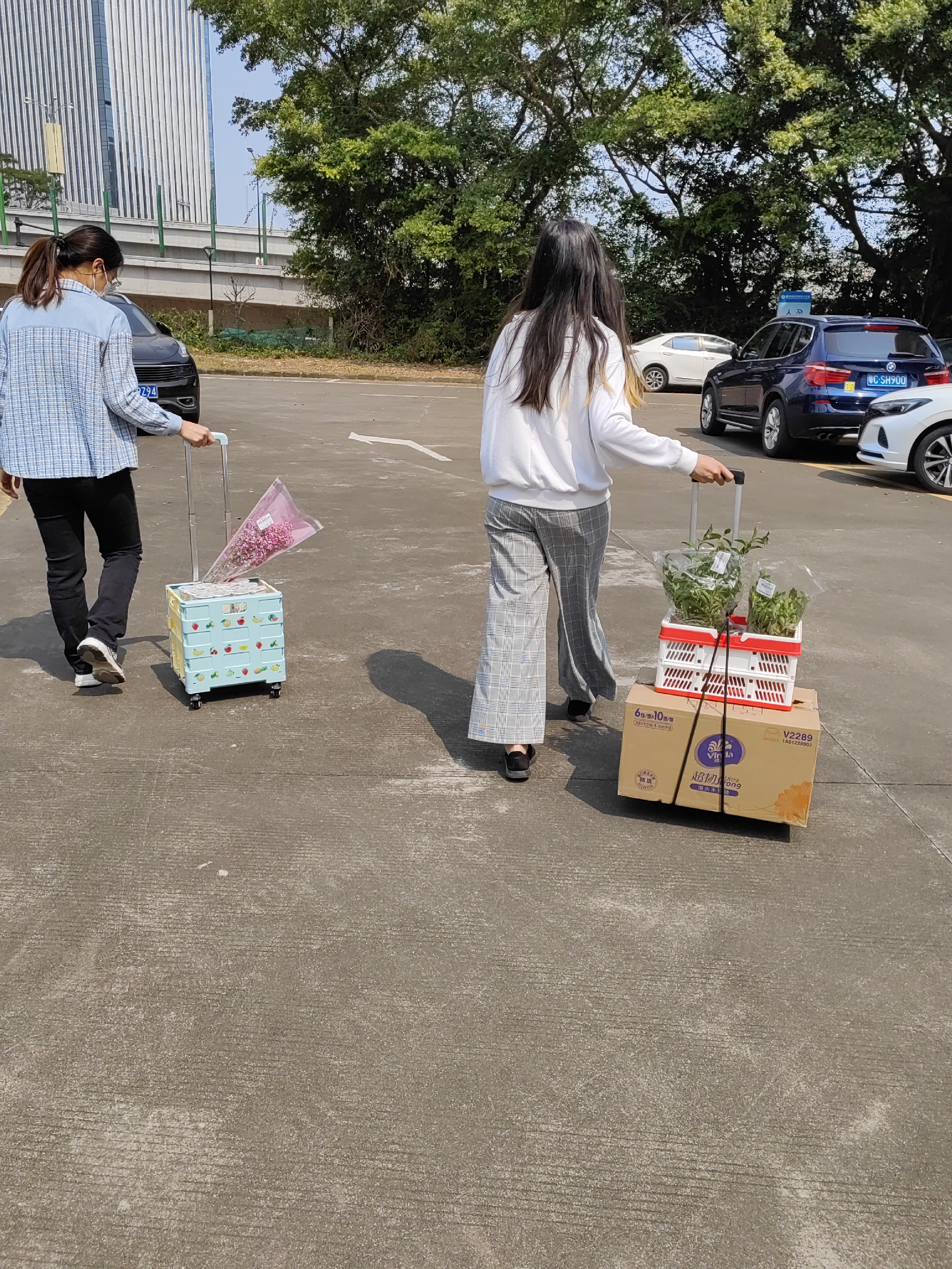 看我们的美眉们开开心心拉着玫瑰花彩绘购物车,大中号折叠购物篮,折叠手推车奔着取货点就拿礼物去了。